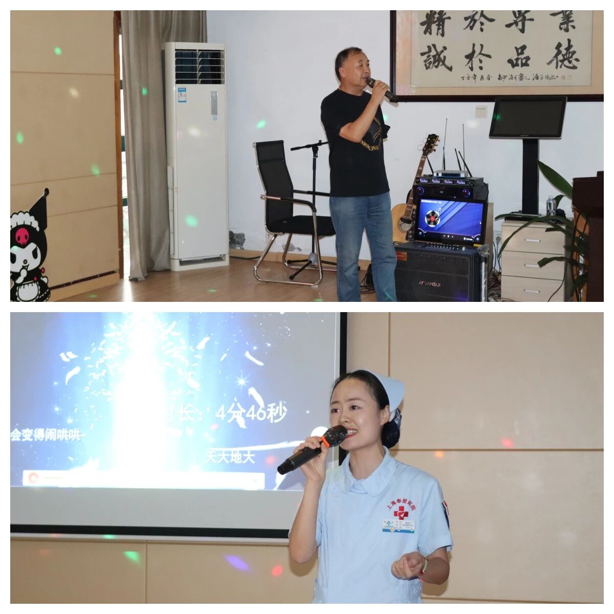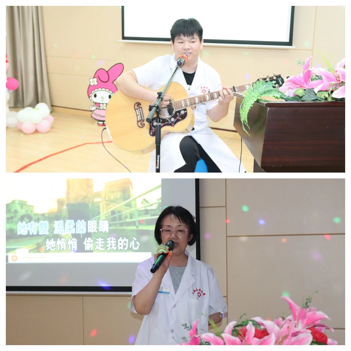 临近尾声,“吉他王子”贺文杰的自弹自唱《写给秦淮》惊艳全场,指尖流淌的旋律与清澈的歌声完美融合;裴主任则以一首抒情的《小薇》温柔收尾,悠扬的曲调让大家沉醉其中,直至主持人发声才缓缓“苏醒”。