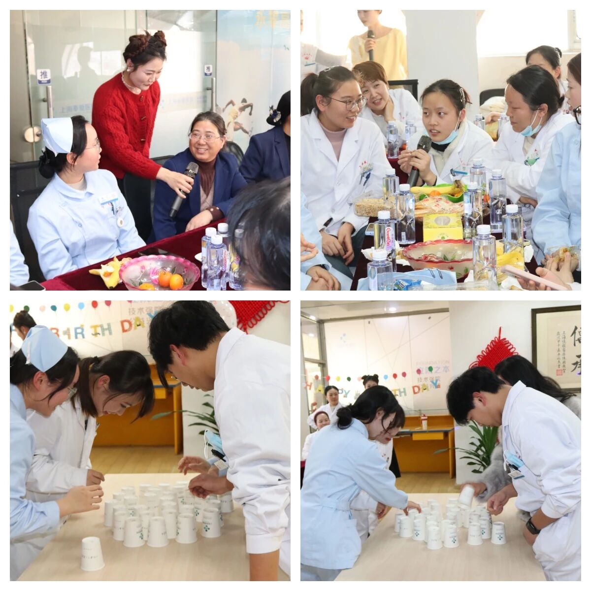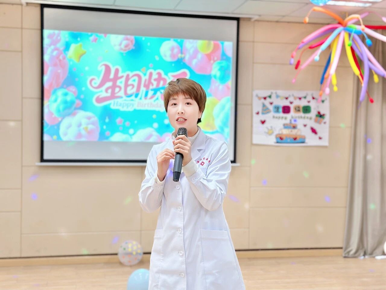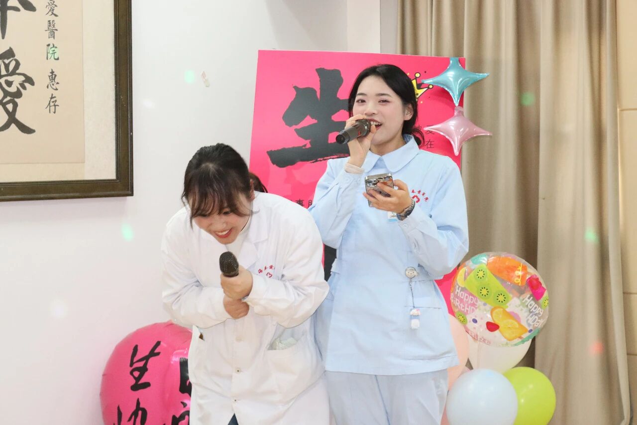 药房夏老师的《借我一点爱》,深情款款、余韵悠长;刘红敏护士的《奇妙能力歌》,灵动婉转、满是活力;口腔科顾主任献上的《你本来就很美》,温柔的歌声里满是赞美与鼓励,让现场暖意融融。当熟悉的生日歌响起,全场齐唱,旋律里满是祝福与感动,将氛围推向高潮。