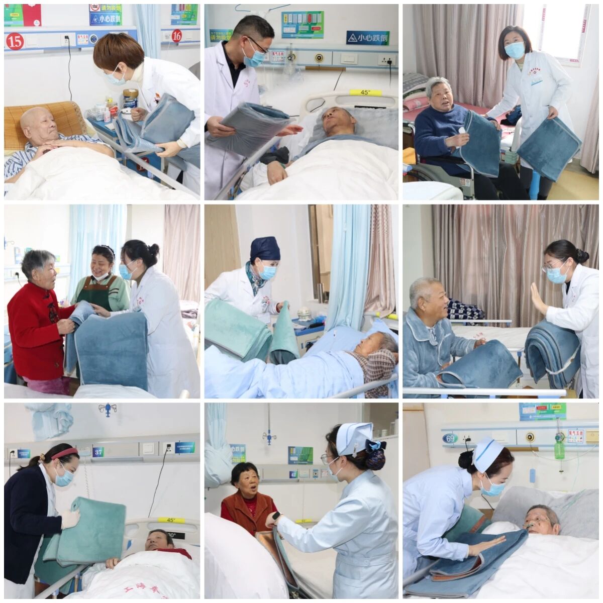 “元旦快乐!这是给您的元旦礼物,希望您早日康复!”陶院带领着大家从一楼到三楼,逐病房、逐患者地送上礼物与祝福,将关怀精准传递到每一位患者手中。当患者和家属接过这份厚实的礼物时,脸上瞬间洋溢起惊喜的笑容,纷纷握着工作人员的手连声道谢:“太感谢医院了,还记得我们这些住院的病人,这个保暖防水垫太实用了,真是送到我们心坎里了!”一句句真挚的问候,一份份实用的礼物,驱散了冬日的寒意,也温暖了患者与家属的心房。整个病区不再有往日的沉闷,取而代之的是温馨快乐的笑意,医患之间的温情在彼此的交流中不断流淌。陶院一行每到一处,都与患者亲切交谈,详细询问患者的病情恢复情况,叮嘱他们安心治疗、好好休养,在新的一年里以健康的姿态迎接新生活。