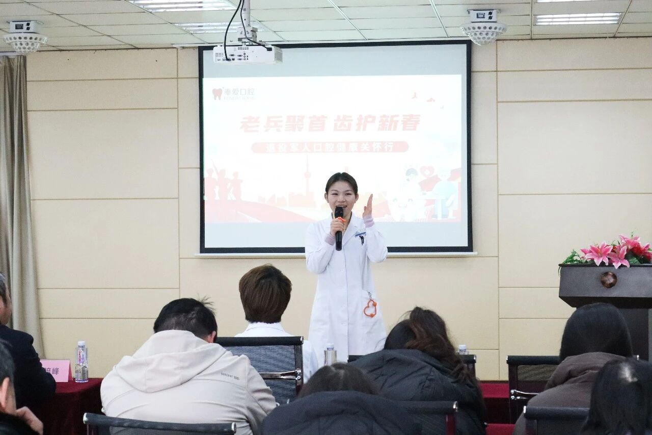 有一种尊崇,致敬无悔奉献;有一种关怀,守护岁月安康。今日上午,上海奉爱医院四楼会议厅暖意融融,一场主题为“老兵聚首·齿护新春”的退役军人口腔健康关怀讲座在此温馨开讲。现场老兵们欢聚一堂,共赴一场关于健康的暖心之约。