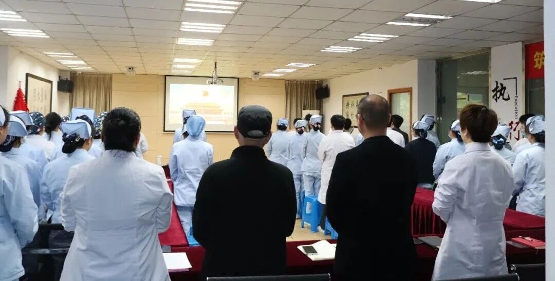 会议在热烈庄重的氛围中拉开帷幕!护士长张玮玮带领全体护士及在场所有参会人员齐声合唱《国歌》,雄壮激昂的旋律回荡全场,既饱含着对祖国的赤诚热爱,更点燃了在场所有人的工作热情与团队精神。歌声里,过往一年并肩作战、共克时艰的感人画面历历在目,也让大家更加坚定了新一年携手前行、共筑辉煌的决心。