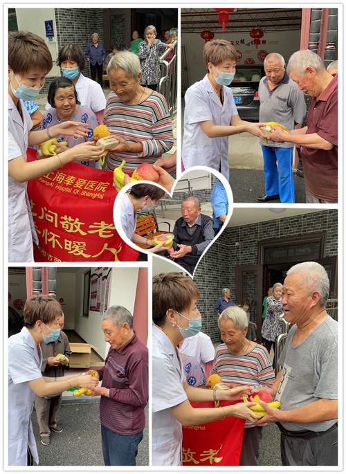 农历九月初九是我国传统节日重阳节,在中国人的传统观念中,双九象征着生命长久、健康长寿的寓意,重阳节也称为 “敬老节”。为进一步弘扬尊老敬老的传统美德,10月14日上午,上海奉爱医院陶院长、办公室白主任携爱心志愿者分别来到奉城敬老院、头桥敬老院开展重阳节敬老院慰问活动,让老人们在端午节里感受到更多的快乐!