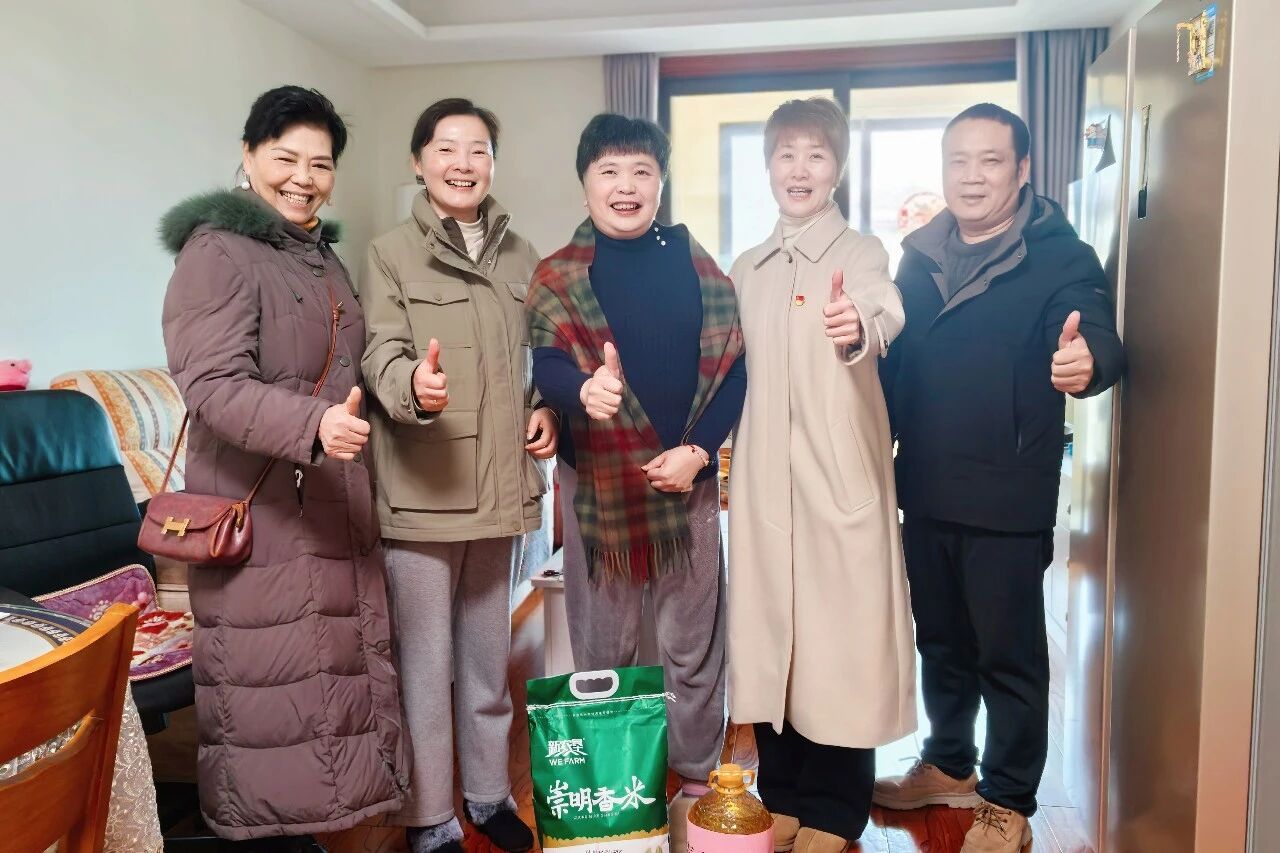 此次慰问活动由上海奉爱医院院长陶培丽(左起第二位)、工会主席詹主任(右起第一位),奉城镇第六居委会张书记(左起第一位),俏霞韵艺术团李致霞(右起第二位)带队,一行人带着精心筹备的慰问物资与诚挚的新春祝福,先后走访慰问了辖区5户困难家庭,与他们面对面交流、心贴心沟通,详细询问家庭生活近况、身体状况及实际困难,倾听他们的心声与诉求,为他们送去冬日里的关怀与慰藉。