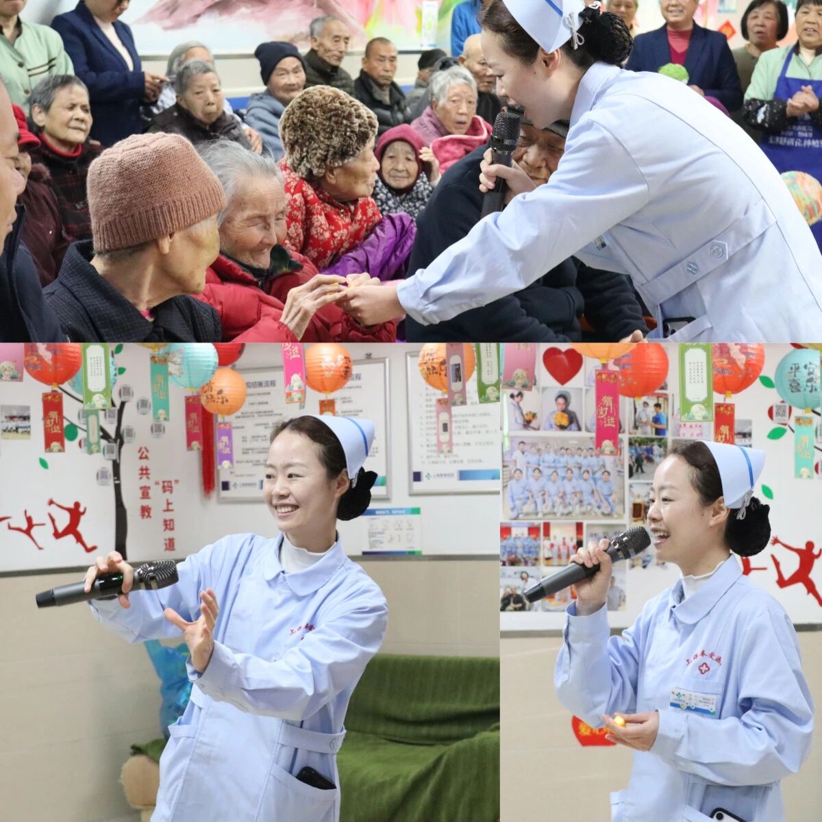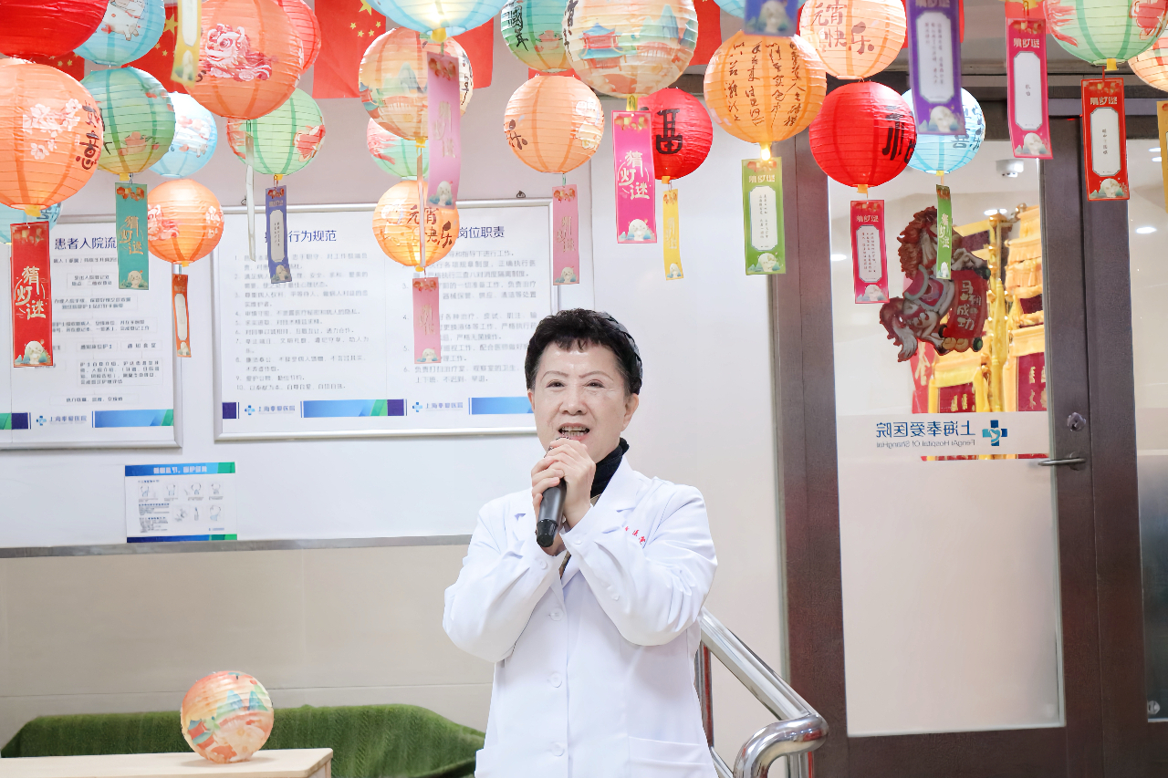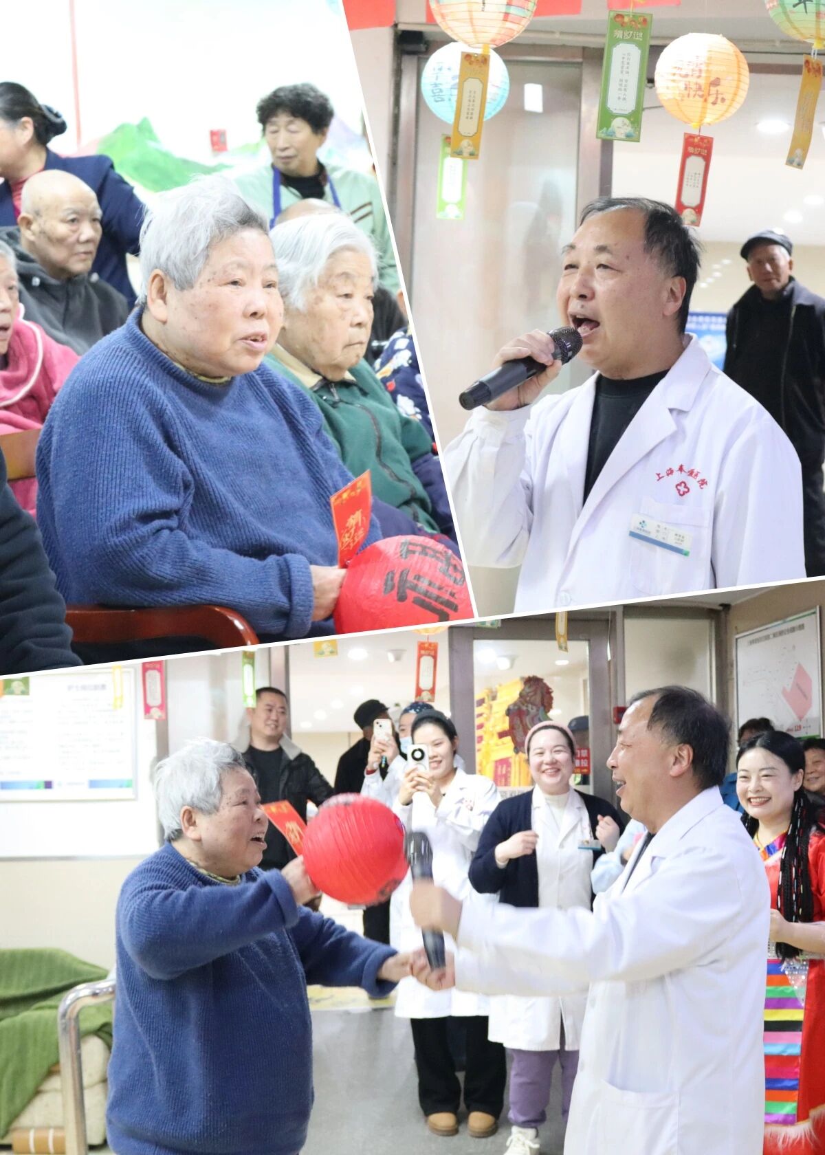 医务科黄主任带来的《敢问路在何方》、《五百年沧海桑田》诠释了医疗工作者的初心坚守;口腔科顾主任凭借深厚的艺术功底,先后带来沪剧《为你打开一扇窗》及歌曲《我曾像傻子一样爱你》,专业的唱腔、动人的演绎,让患者们领略到传统戏曲与流行音乐的魅力。阿桂奶奶更是上台积极与顾主任互动跳舞,引来全场欢笑连连。综合科杨佳似护士长演唱的《老鼠爱大米》《卖汤圆》,旋律欢快、贴合节日氛围,甜美的歌声为现场增添了浓厚的元宵气息。