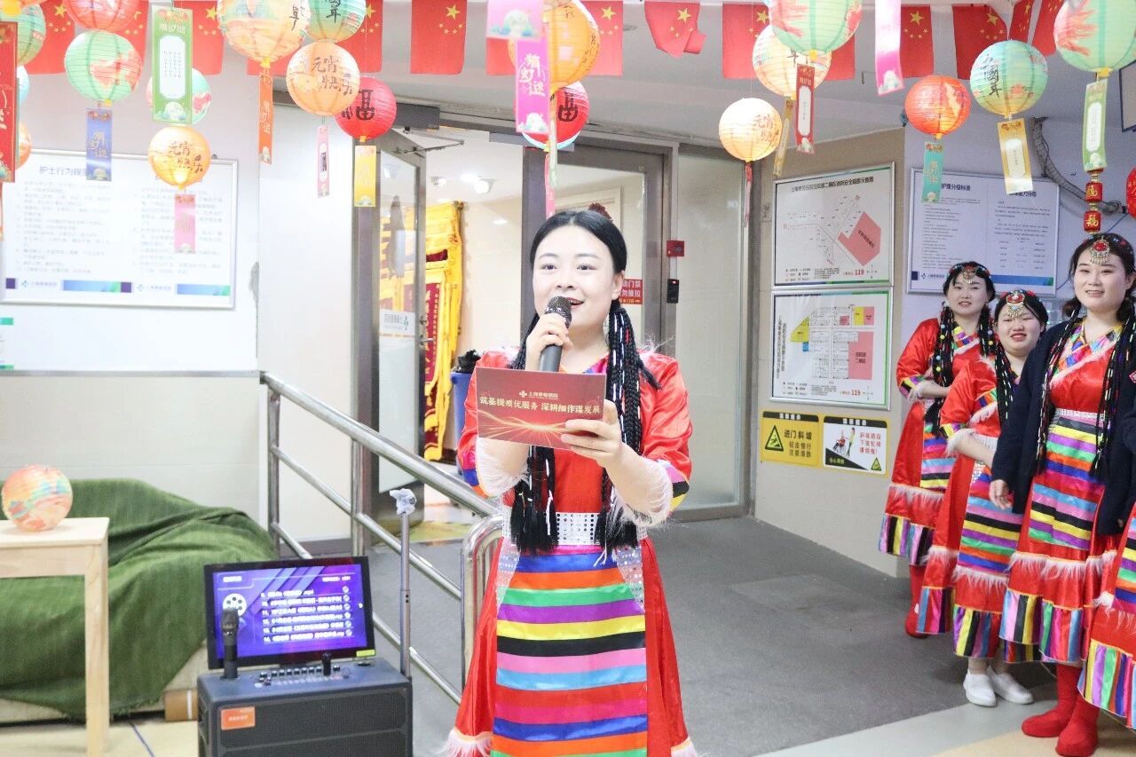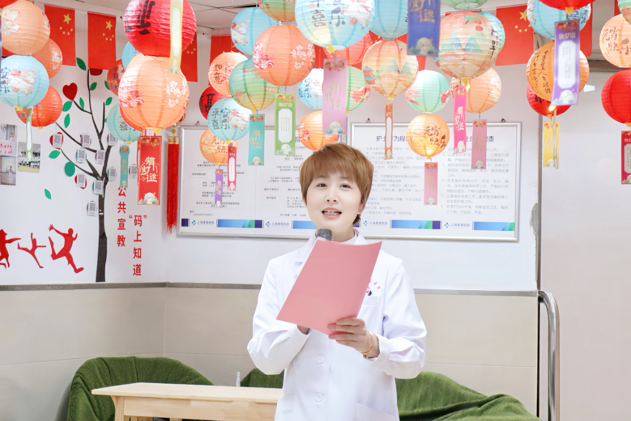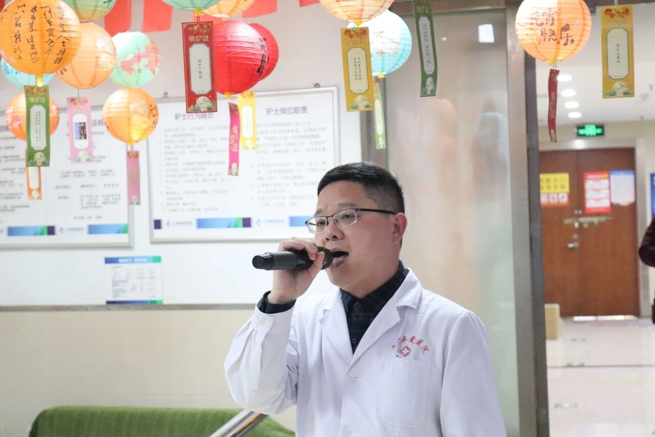 医务科黄主任带来的《敢问路在何方》、《五百年沧海桑田》诠释了医疗工作者的初心坚守;口腔科顾主任凭借深厚的艺术功底,先后带来沪剧《为你打开一扇窗》及歌曲《我曾像傻子一样爱你》,专业的唱腔、动人的演绎,让患者们领略到传统戏曲与流行音乐的魅力。阿桂奶奶更是上台积极与顾主任互动跳舞,引来全场欢笑连连。综合科杨佳似护士长演唱的《老鼠爱大米》《卖汤圆》,旋律欢快、贴合节日氛围,甜美的歌声为现场增添了浓厚的元宵气息。